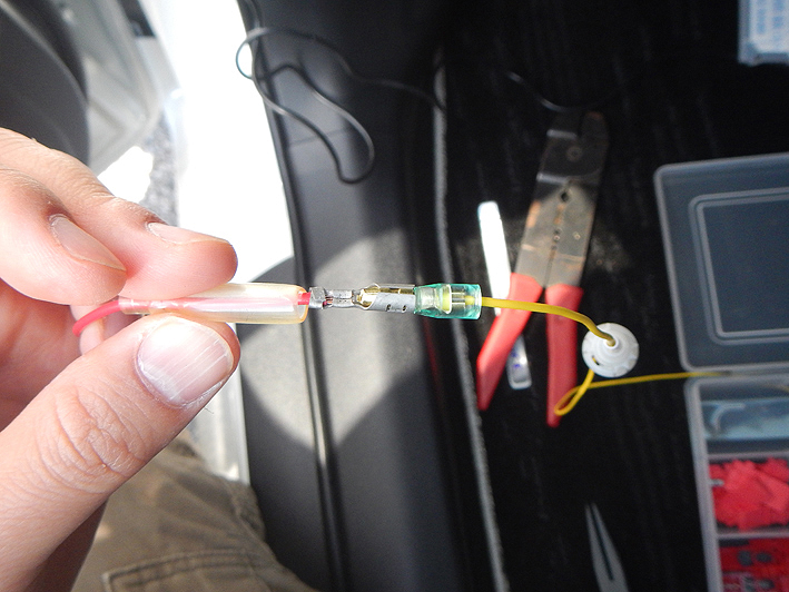 なので、ヒューズ電源10A (赤色コード)側のヒューズを取り除きギボシ端子(メス)を作ります。