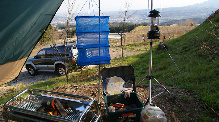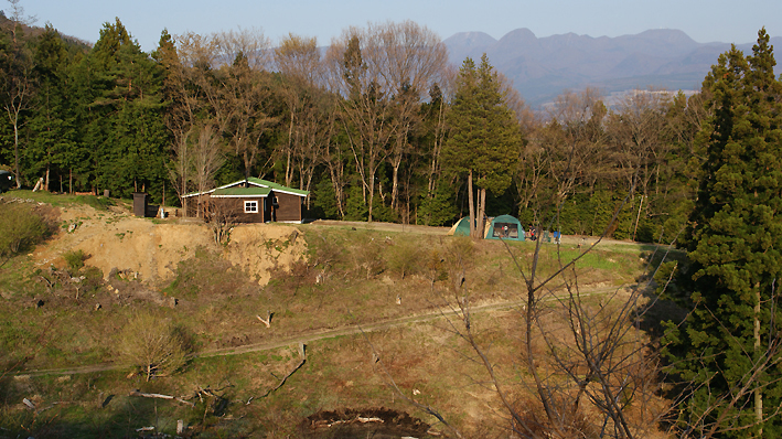 お!1組のファミリーが管理小屋前でテント貼ってます。ちなみにこの日から今年最初の営業らしいです。