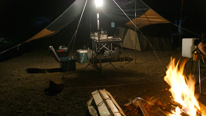 色々作ってお腹も膨れてきたので焚き火の時間です。