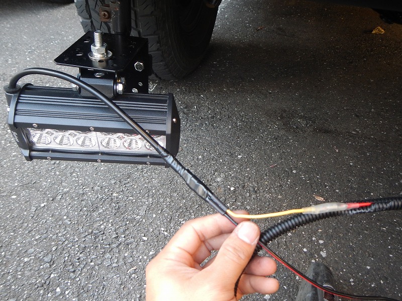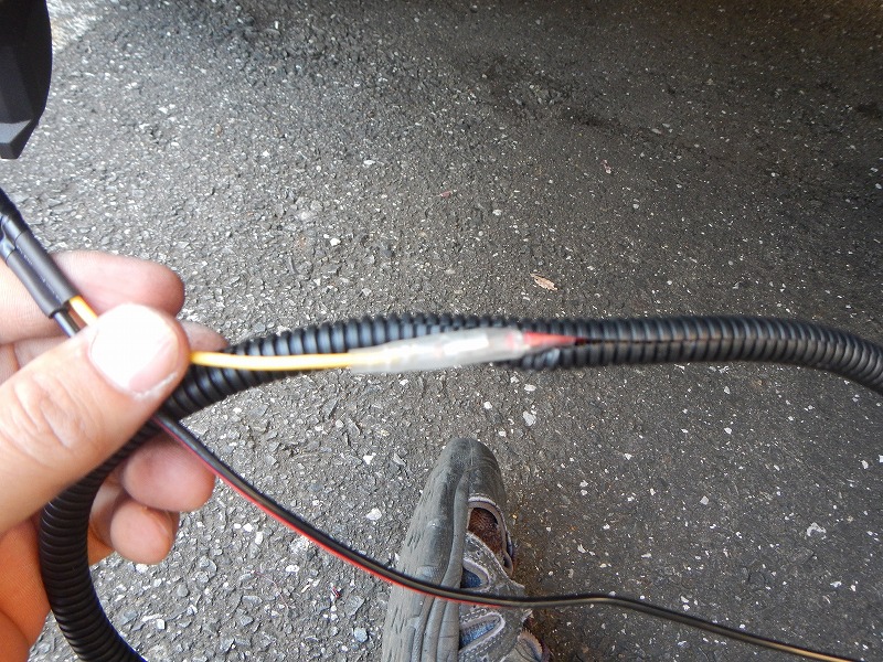 黒のコードが電装品(ライト)で、常時電源(ACC電源)に繋げます。