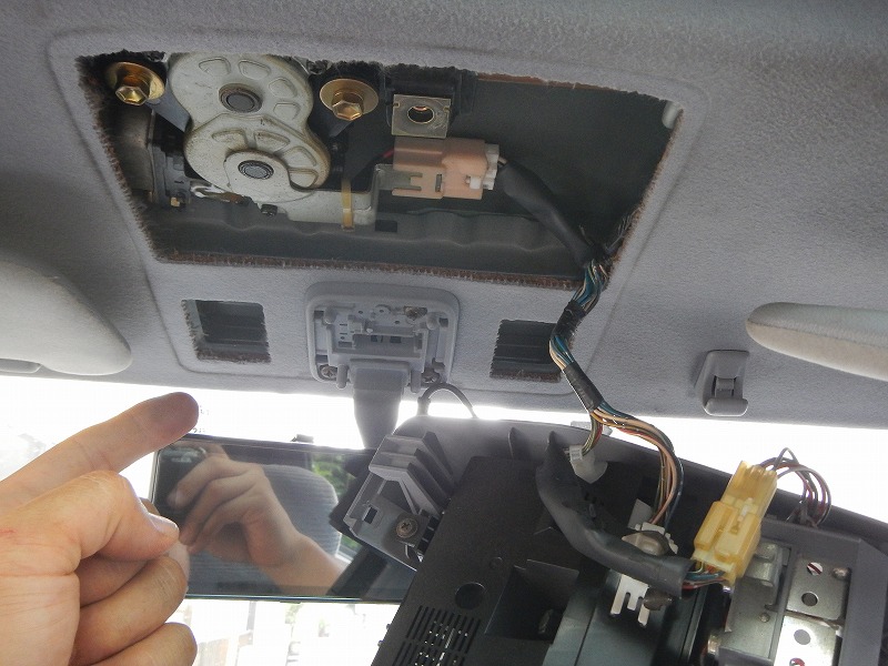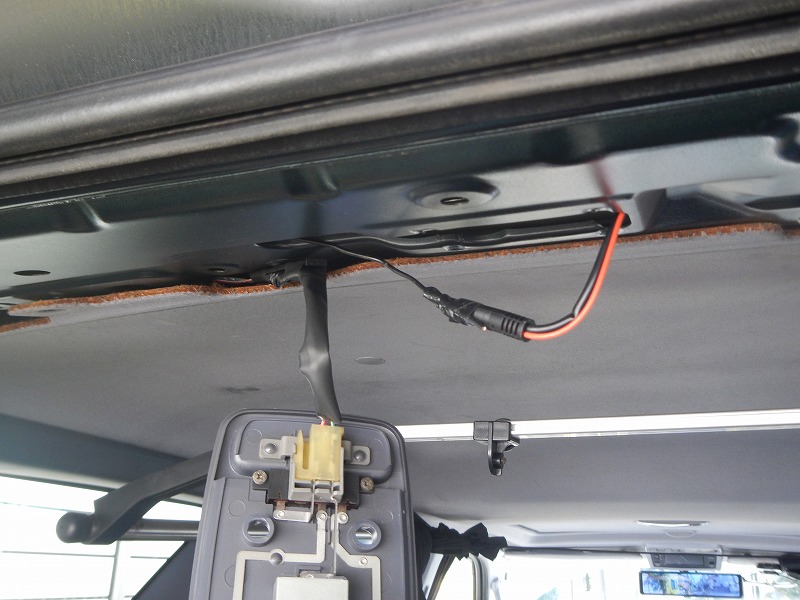 次に天井裏よりバックモニターの取付け位置までコードを這わせます。