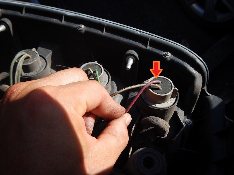 テールランプを取外すと各ランプのコードが出てきます。