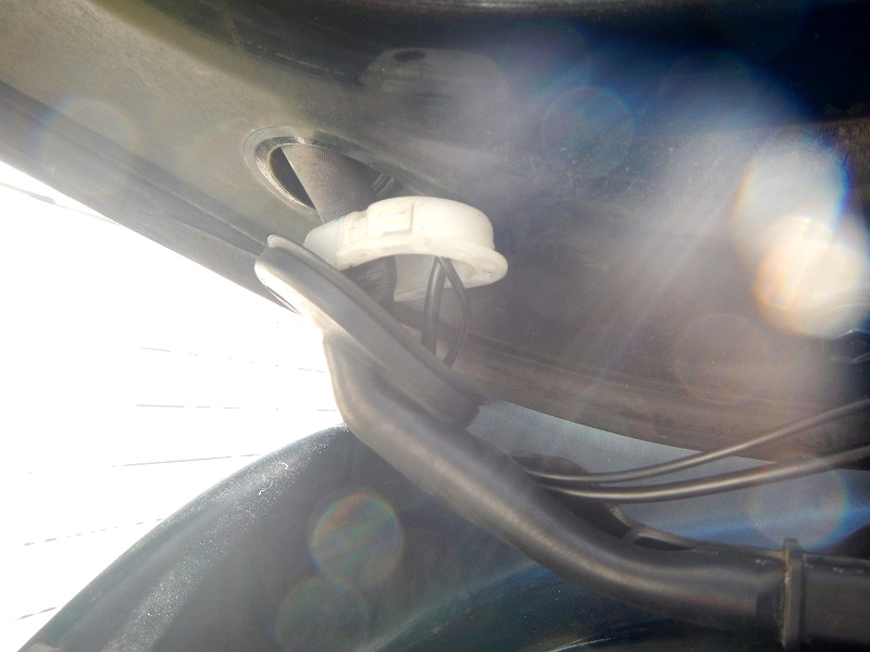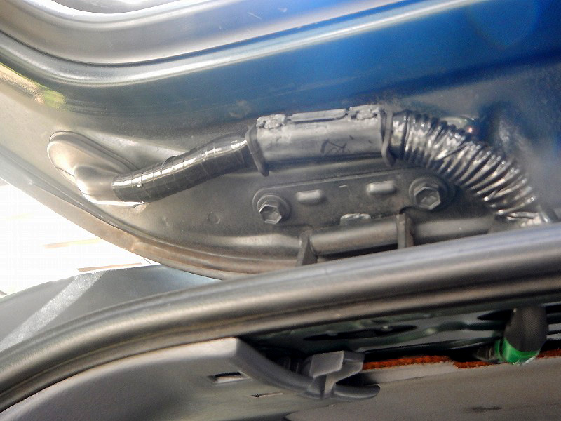 では、ここからバックモニターのコードを入れてバックドアガラスまで持っていきますよ。