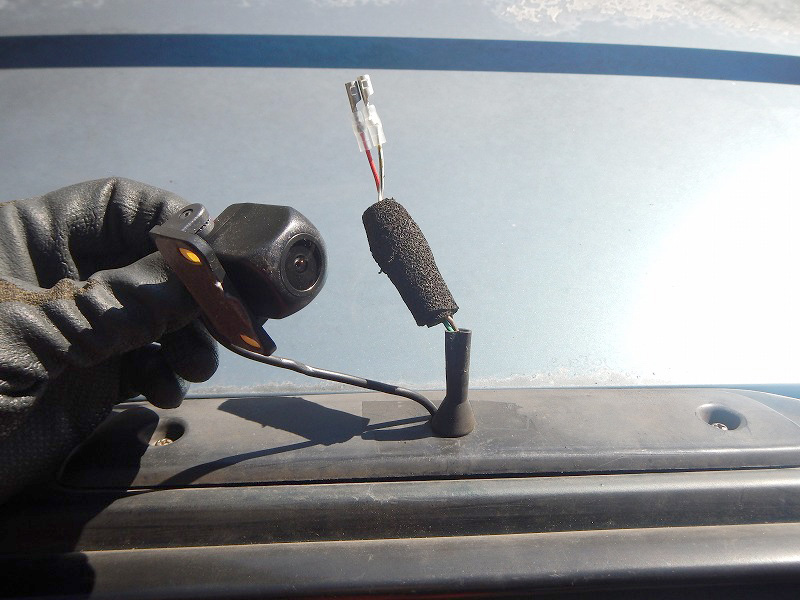リアウィング内のブレーキランプコードと同じようにバックモニターのコードも出します。