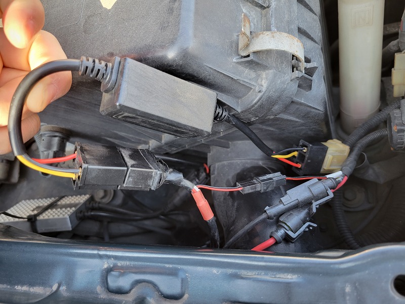 ユニット取付け位置はリレーレスユニットとヘッドライトカプラーの間みたいです。