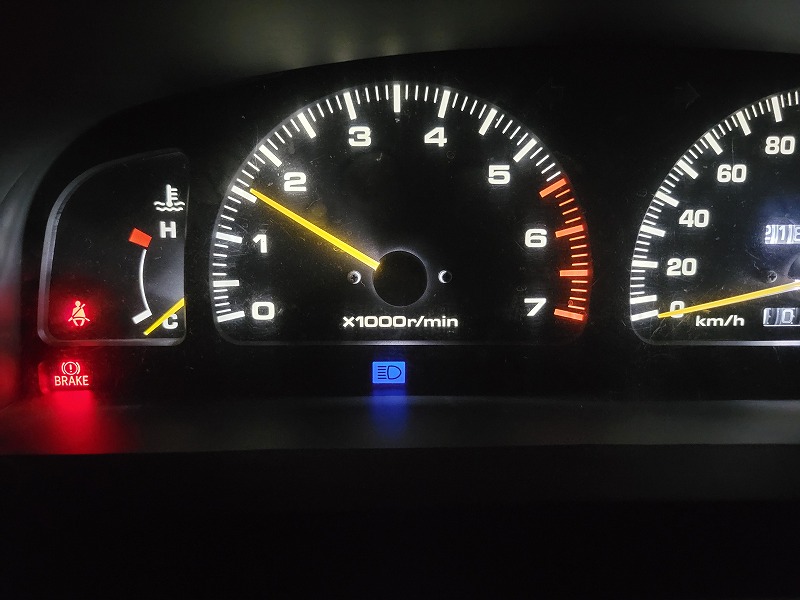 メーターパネル内のハイビームインジゲーターもしっかり点灯してます。これで車検問題解決しました。 あぶなかった~。