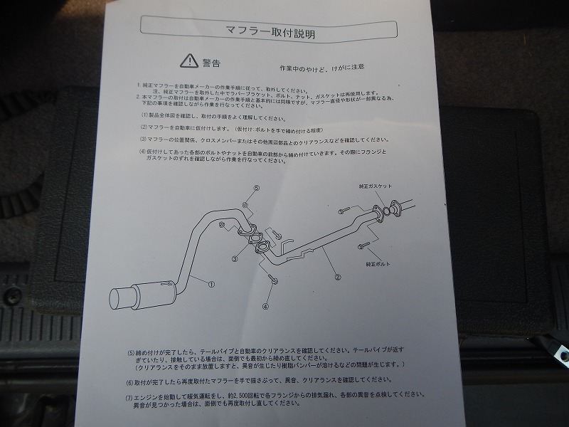 さ~新しく購入したマフラーを取付けましょう。しっかり説明書確認します。