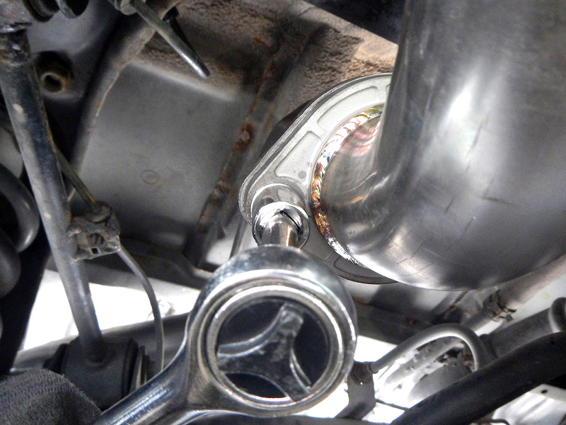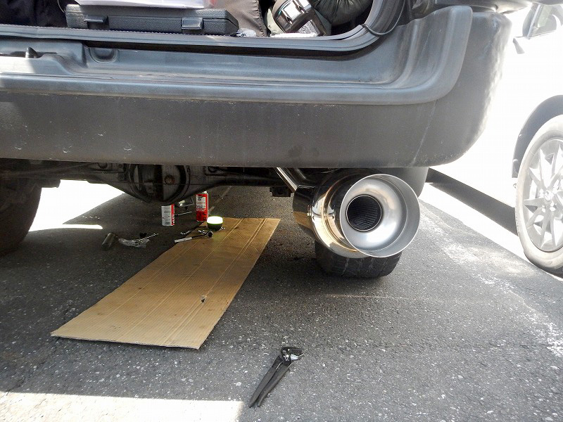 っとこんな感じでマフラーの取替え完了です。作業に半日以上掛かると思って ましたが2時間くらいで終了。純正マフラーがポッキリ折れたおかげだと思います。 後は、マフラーに黒の塗装をするかって所ですね。それでは。