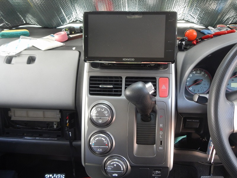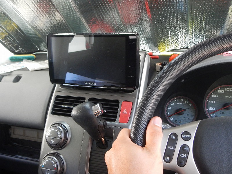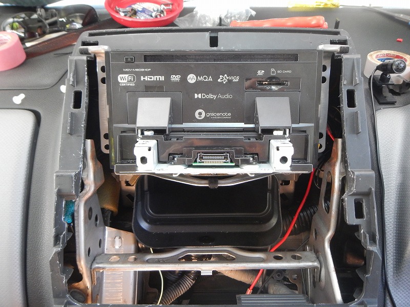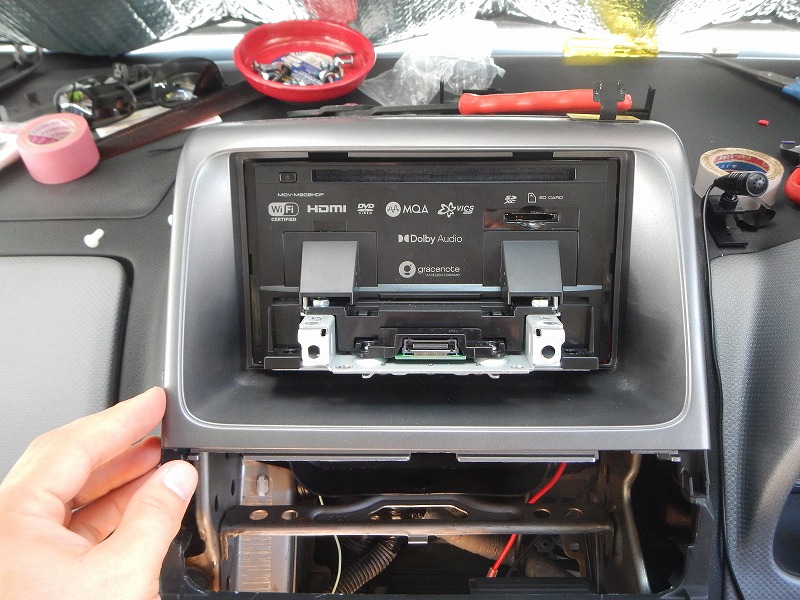 新しいナビ本体にブラケットを取付け収めます。