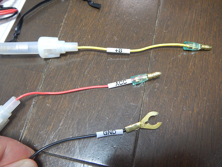 で、コードですが黄色の+Bが車の常時電源コード。赤色のACCが車のアクセサリに。黒のGNDがアースですね。