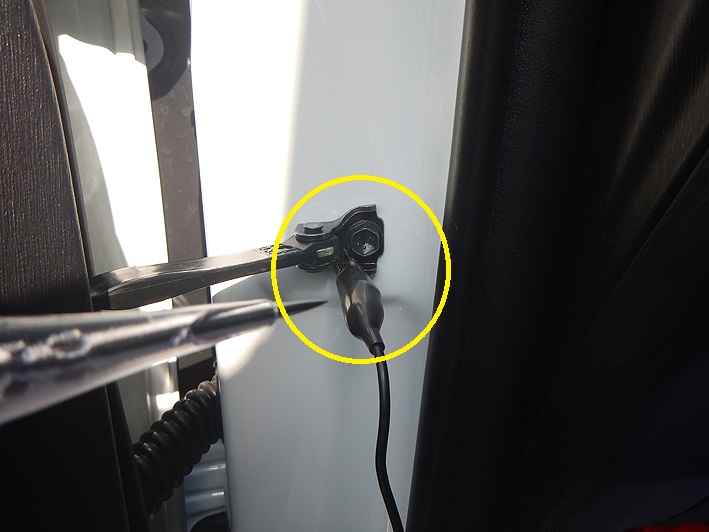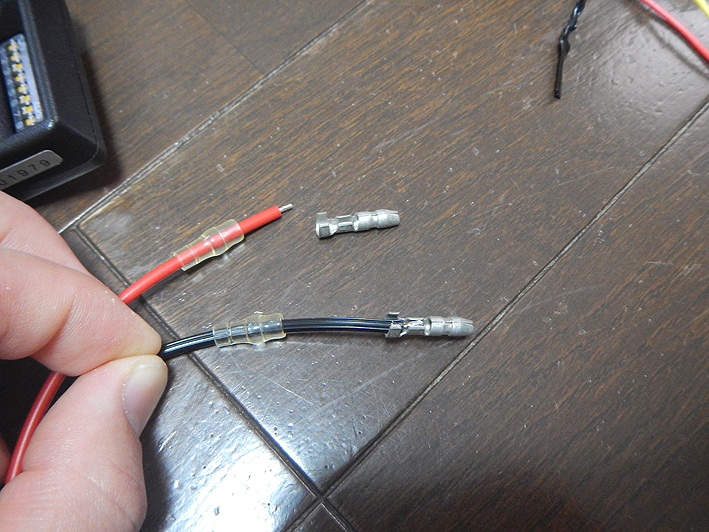 USB電源直結コードですが、配線の先は何もありません。なのでギボシ端子(オス)を付けます。これでとりあえず準備は完了。 で、今回は常時電源、ACCはヒューズボックスから取りたいと思います。なので、ドラレコの配線は