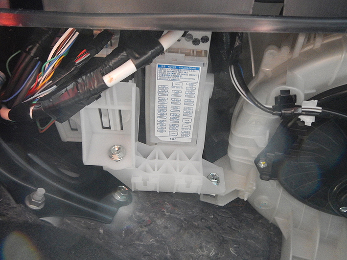で、コンソールボックスを取り外すとヒューズBOXが出てきます。