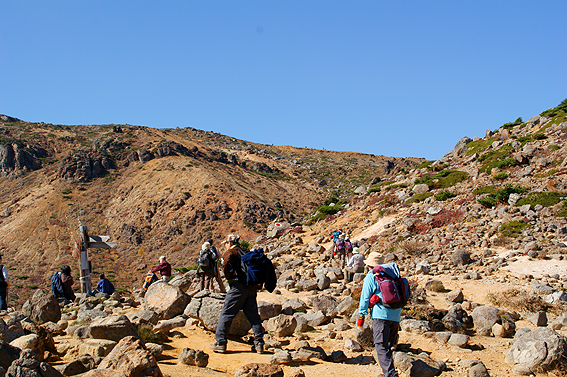 私が登ってきたコースと反対から来てる人が多かったですね。何故かは後々分かりますよ。 皆さんこれから山頂目指して登っていく様です。