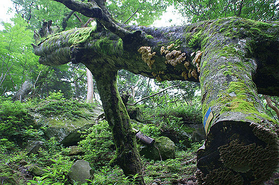 この樹木にもコケがビッシリ&数種類のキノコがビッシリ・・・キモイ