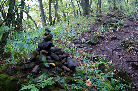 なんでしょうか、度々石が積んであります。