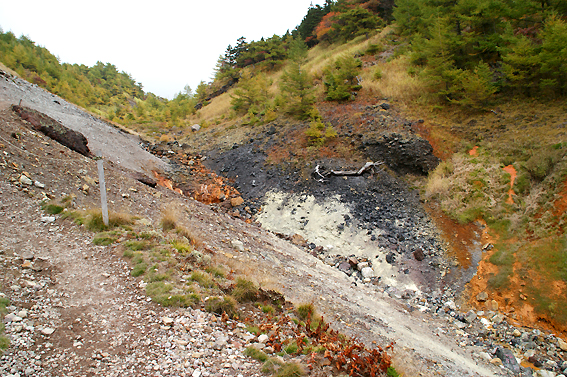 お!ここはなんですか~。若干硫黄の香りが。登山中に硫黄の香りは辛い。