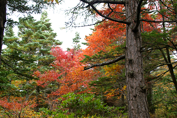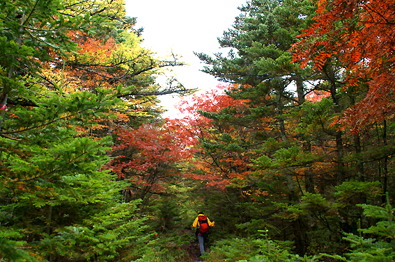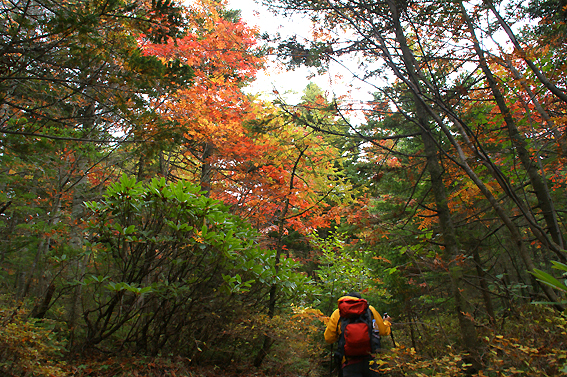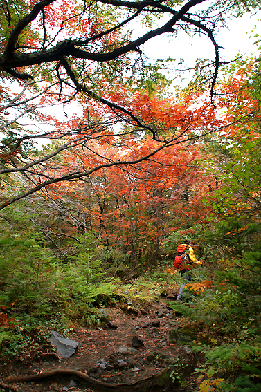 で、気づいてみたらいつの間にか紅葉の森に突入してました。
