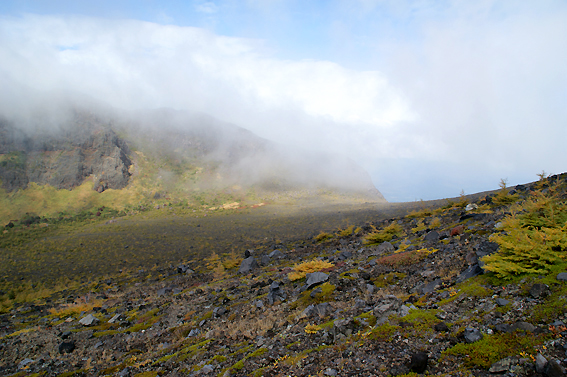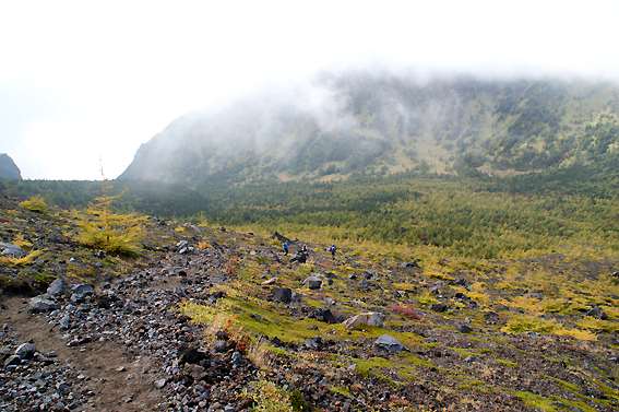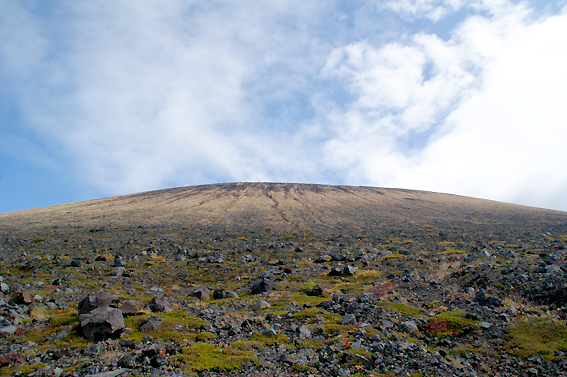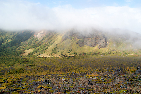 ようやく、浅間山の全体が見えてきました。雲が邪魔!