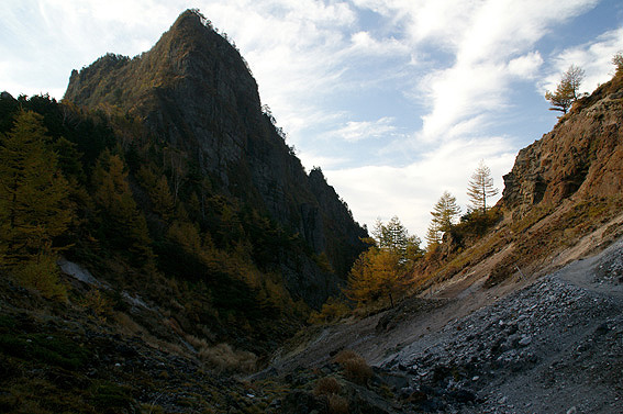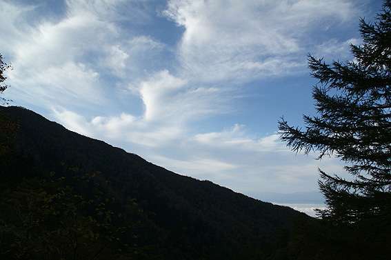 あのぎざぎざした山は、槍ヶ鎖かな〜。