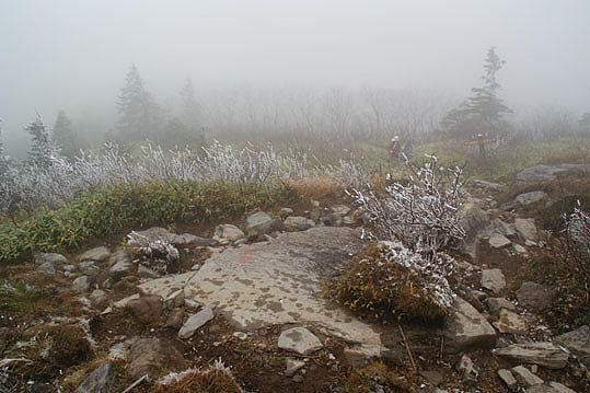 ガスっていて全然みえません。山の本だとここからの見晴らしは良いらしいです。 残念・・。