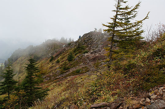 見えてきました。小さい岩峰。向こうから登山者が登ってくるのが見えました。