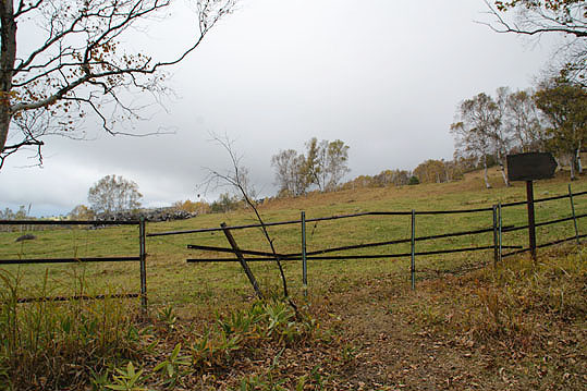 牧場沿いを歩きます。