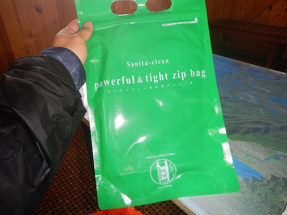 そしてこれが携帯トイレです。弘法清水小屋で購入(300円)出来ますよ。で、用を足した後は携帯トイレを持って山を降り、登山口に