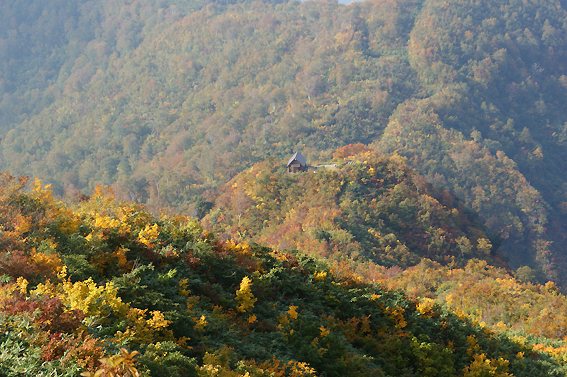 もうあんなに遠くに千本槍小屋がありました。