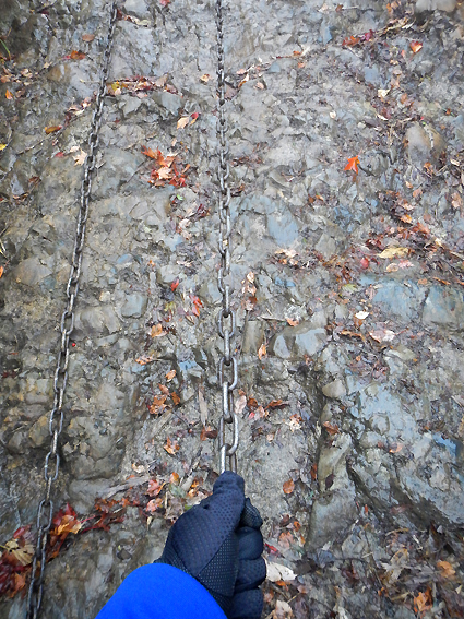 急な登りってこれ? いきなりの鎖場かよ。