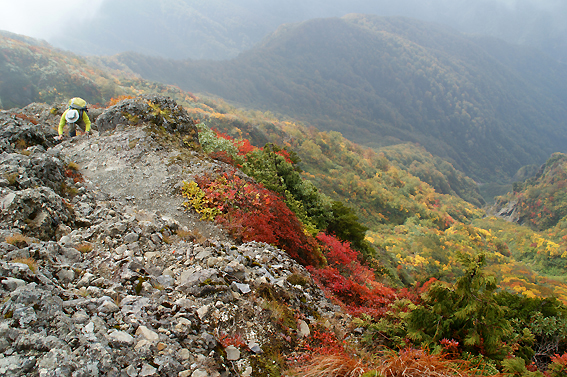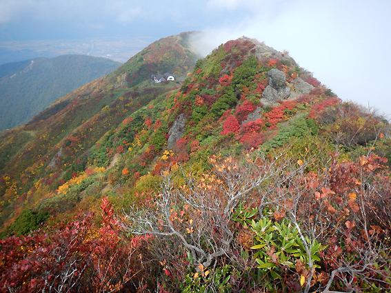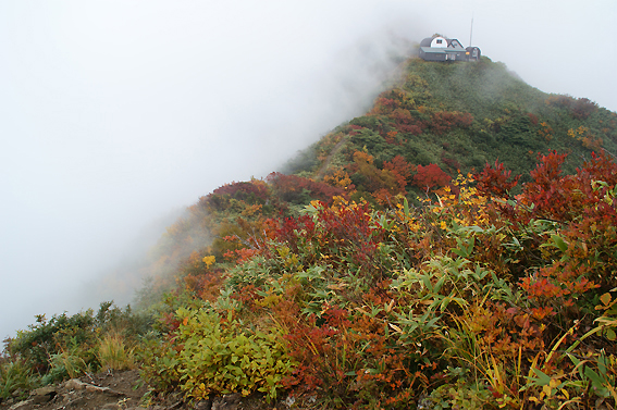 おぉ~一瞬雲が途切れました。すげ~綺麗な景色。山の上はしっかり紅葉付いてました。