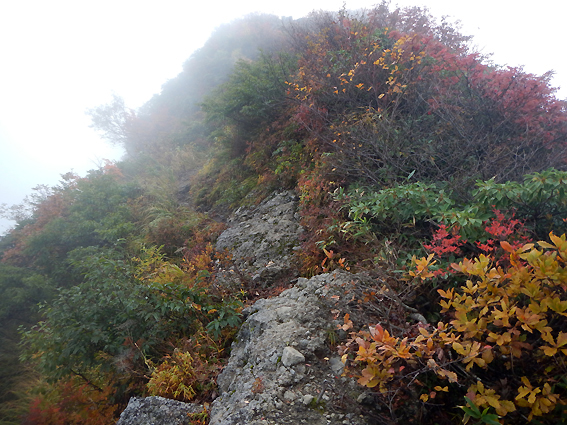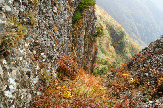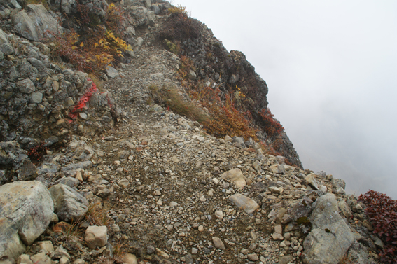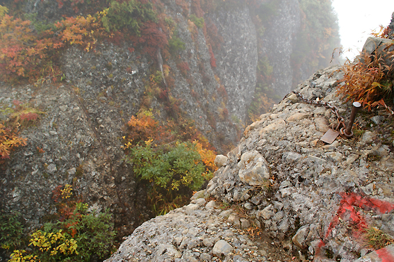 登り終えあの岩場を進みます。断崖絶壁・・・・怖え~