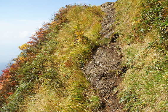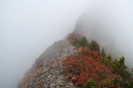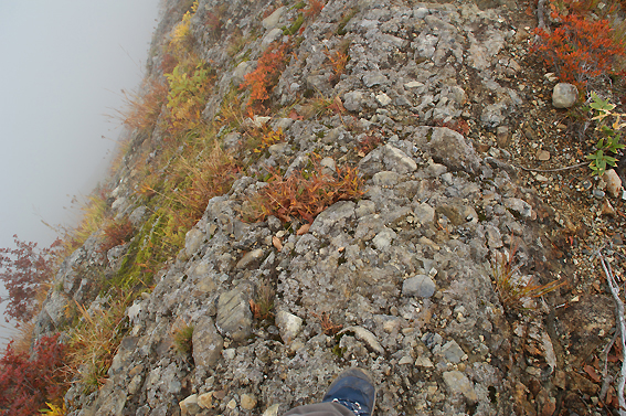 すぐ左側崖ですね。雲のおかげで下が見えません。