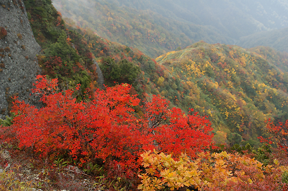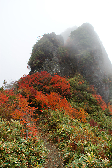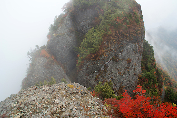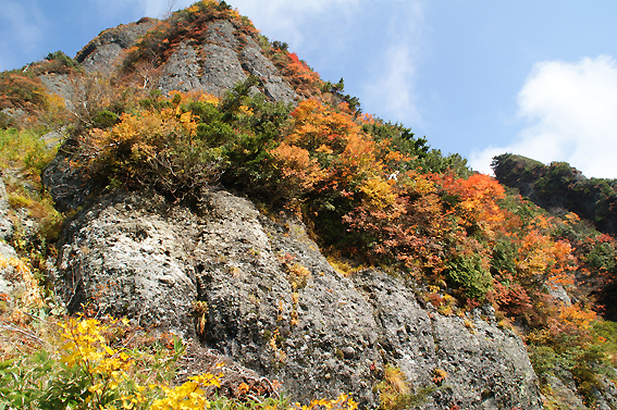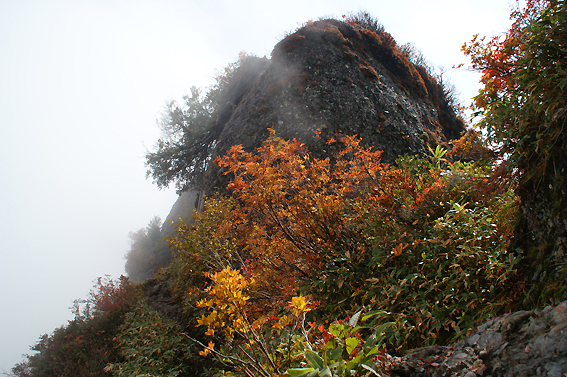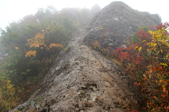 すべての岩場をクリアした頃には空も晴れ渡っていました。紅葉が綺麗です。山の神様からのご褒美ですね。