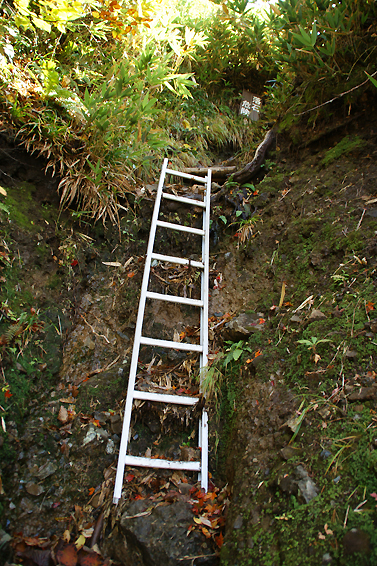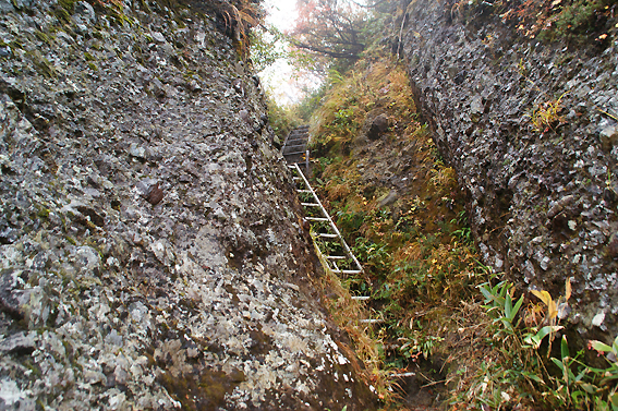 いきなり急な崖をハシゴを伝って降ります。なんだこれ、迂回ルートも半端無いぞ!怖け~。