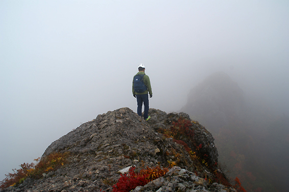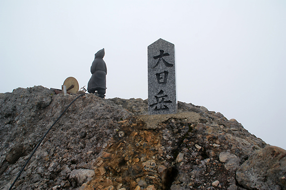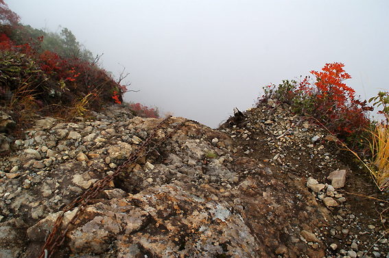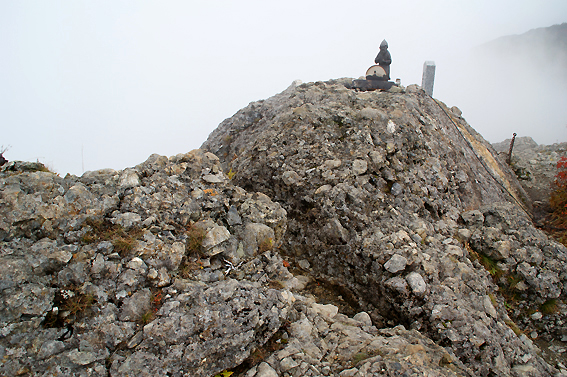 山頂は雲の中なので景色は災厄ですが、下が見えない分ある意味ラッキーなのかも。