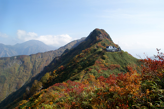 見えてきました。千本槍小屋。こうやって見ると紅葉に囲まれた小屋なんですね。
