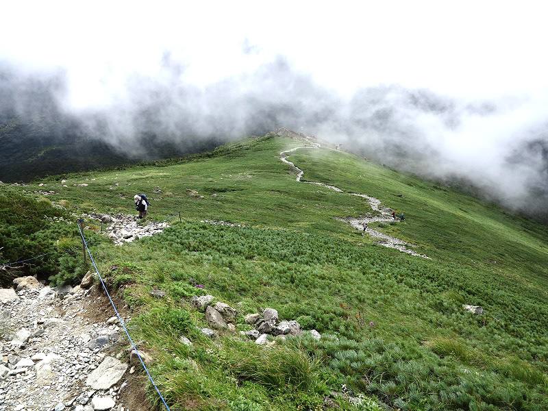 山頂に近づくほどガスが掛かってます。