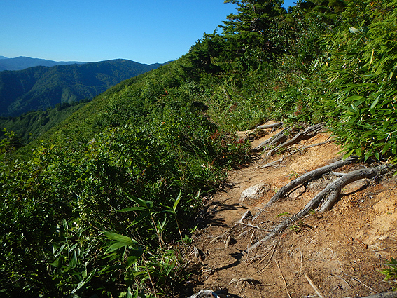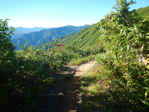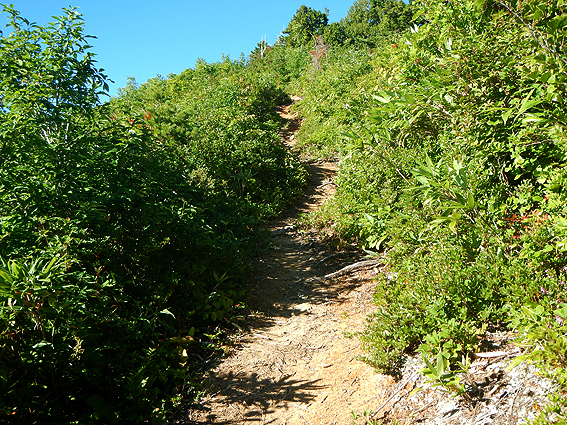 日影の山道がありがたい。風が涼しいです。