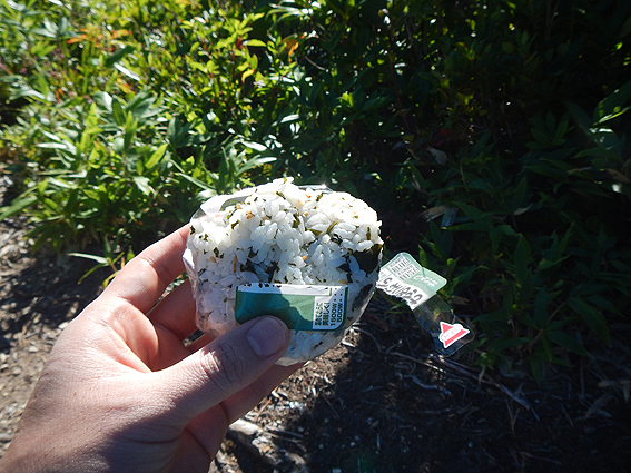ここで朝飯のわかめおにぎりを1個頂きますが・・・・口の中の水分が持っていかれる。全然喉を通らない・・・貴重な水を飲みながらおにぎりを飲み込みました。