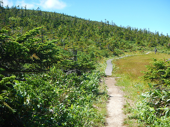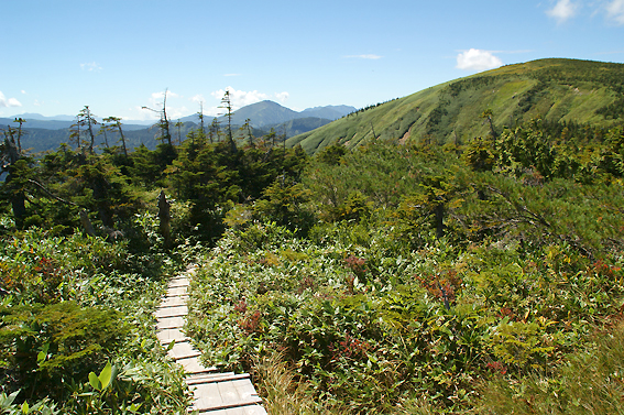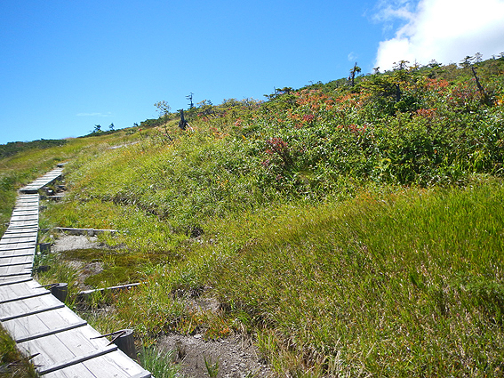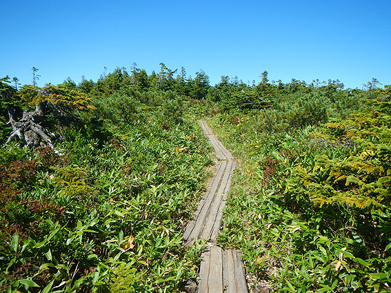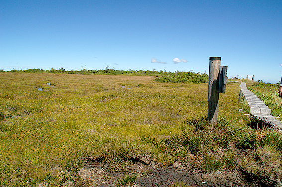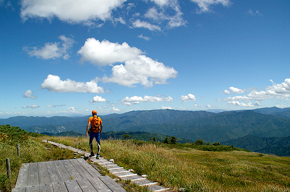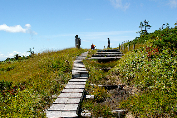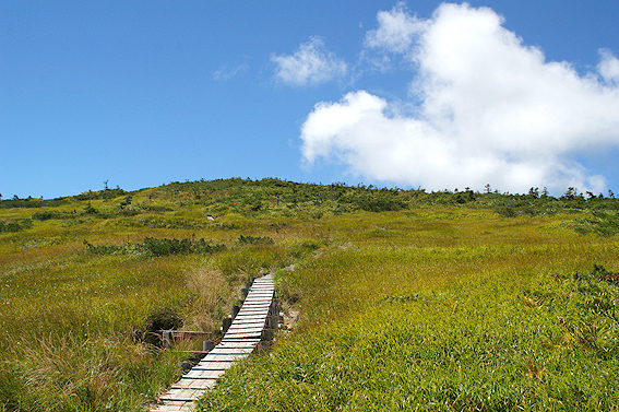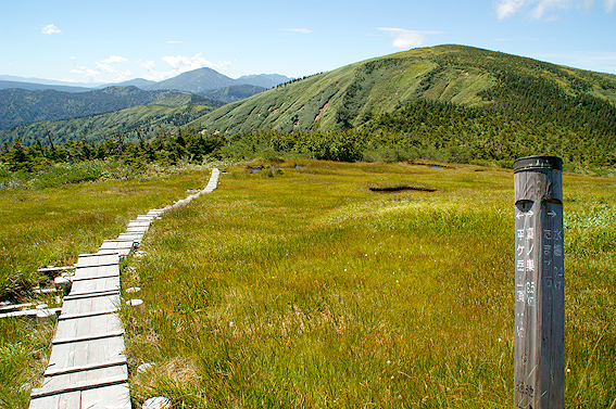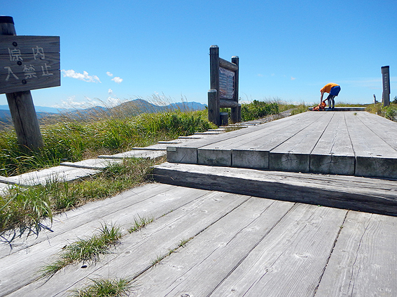 そして、池ノ岳の木道を進んで山頂を目指します。山頂は目の前です。あと1km!