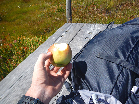 道の駅で買ったりんごがまた美味すぎ!もう足が動きません。参ったな~ここは山頂一歩手前なんですよね。 とりあえずしばし休憩です。
