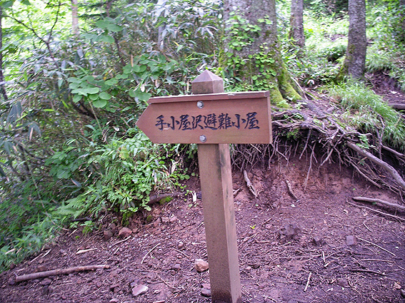 手小屋沢非難小屋付近に到着。3名が横になれるぐらいの小屋だそうです。 ここからいっきに登りが厳しくなりますよ。
