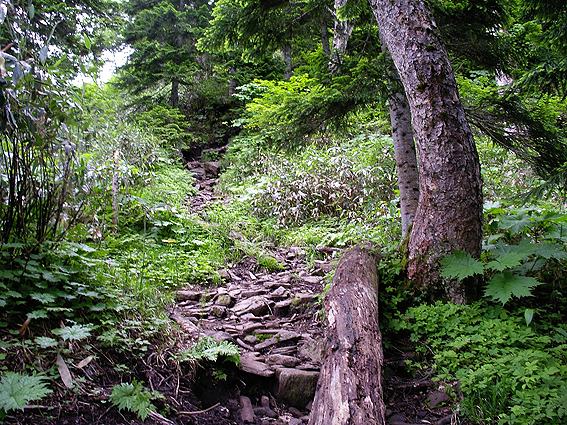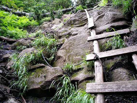 ここから7〜8mある岩場を登る、固定ロープに鎖のオンパレードエリアです。