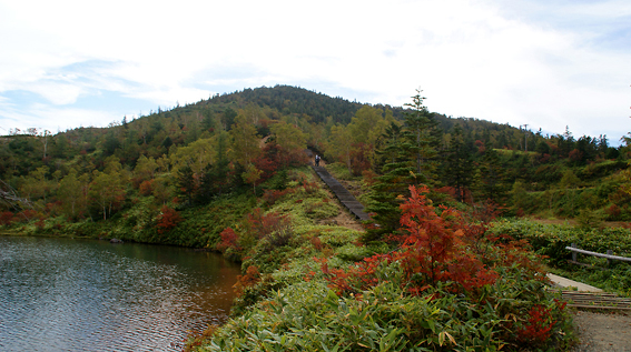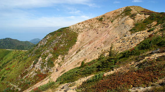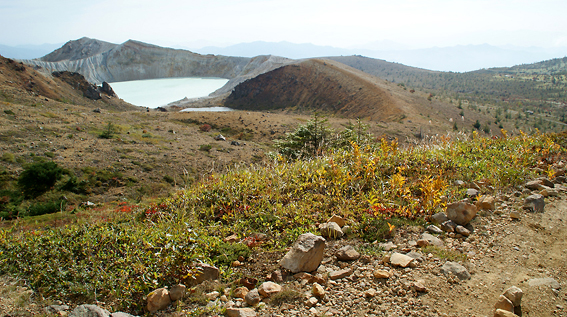しばらく登ると、湯釜が見えてきました。