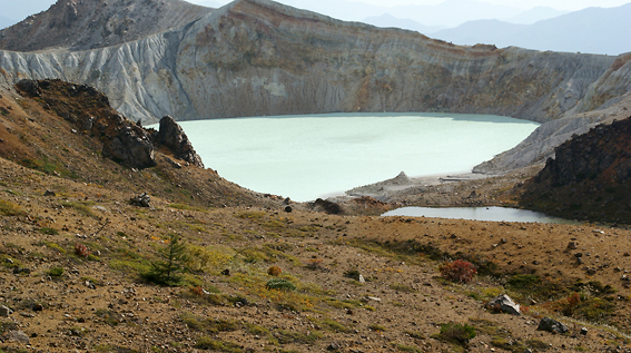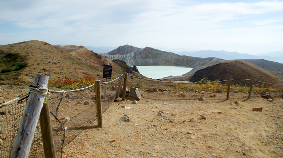 駐車場からすぐの所に、湯釜があります。見てみましょう。