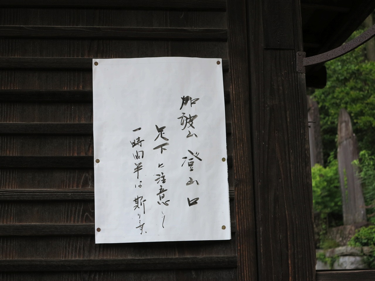 見つけた。登山口の張り紙。さ~参拝も終わったので向いましょう。