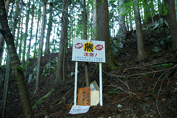 いきなり熊注意!の看板が。しっかりクマよけの鈴を付けましょう。