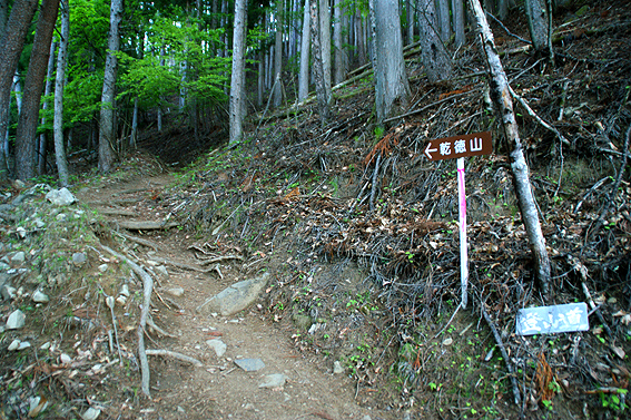 途中に、乾徳神社が構えてました。無事に登山ができるように拝んでおきましょう。