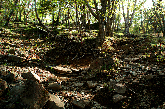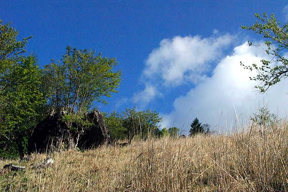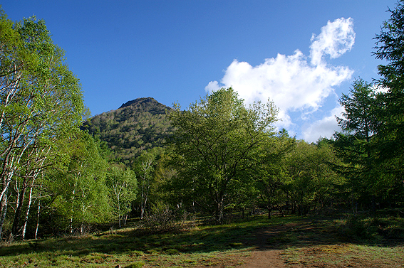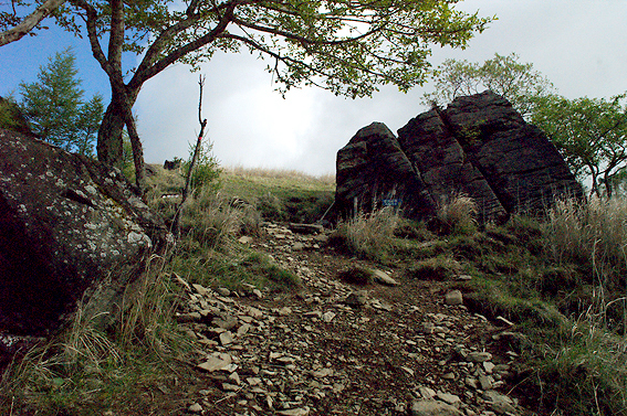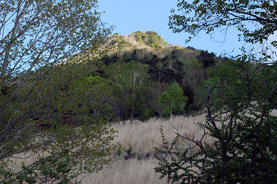 しばらく進んで行くと空が開け、山頂が見えました・・・多分あれが山頂かと。