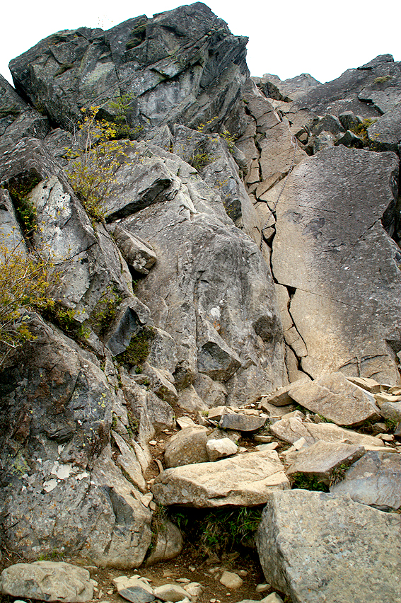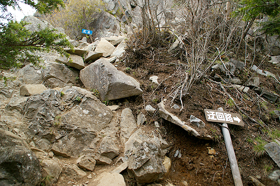 お!?来たか。この山のメインと言ってもよい岩場が。